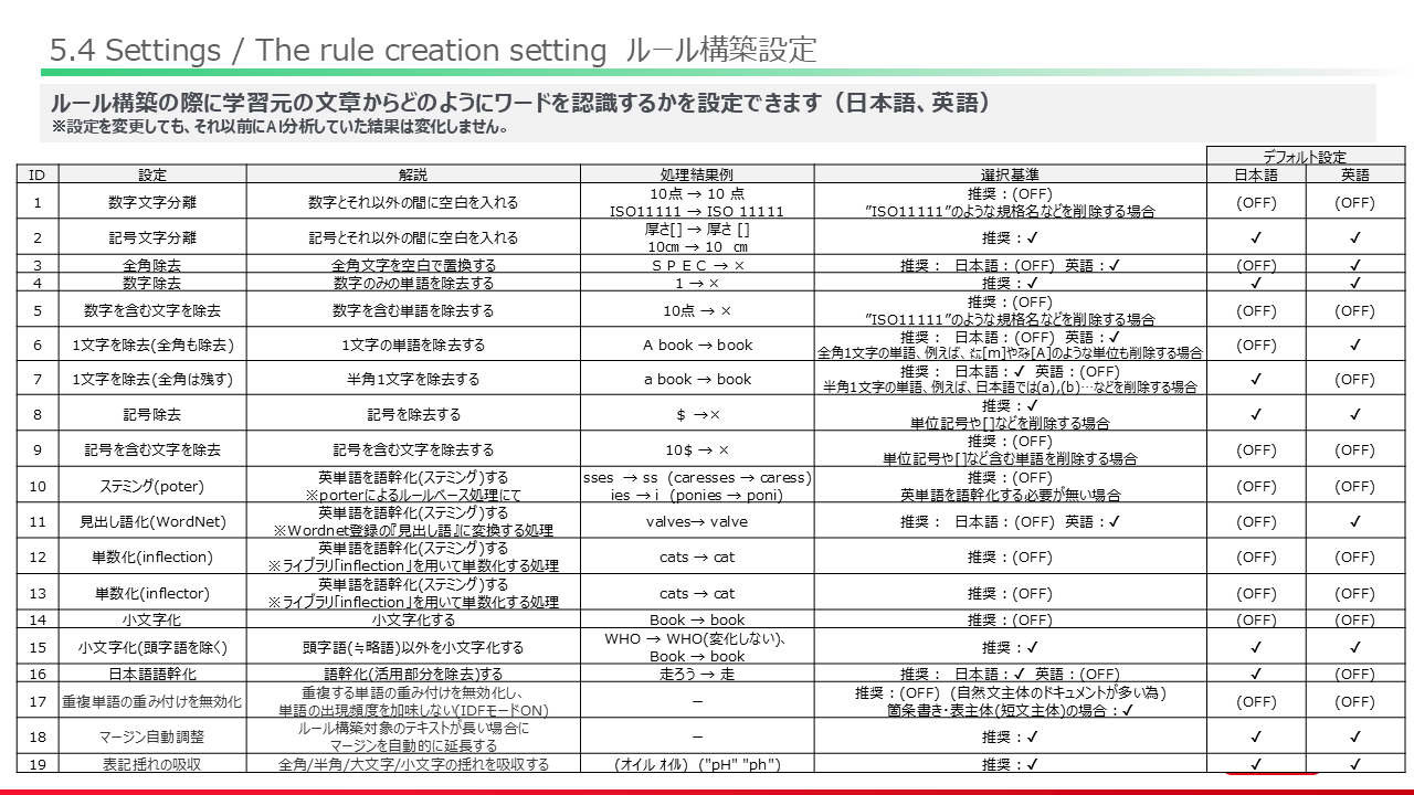 5.4 ルール構築設定 / Rule Creation Settings 2024年11月05日 05:28 更新 English version >> click here SpectARGV_OperationManual_50_SettingList_JPN.pdf 2 MB ダウンロード