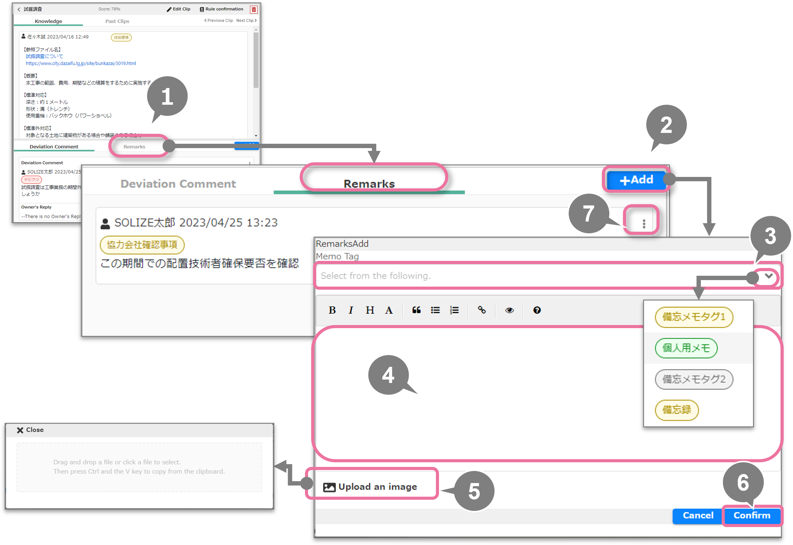 顧客に提示する内容を他のメモと分けて残せます。※この項目名の変更を希望される場合はSOLIZEにご連絡ください
