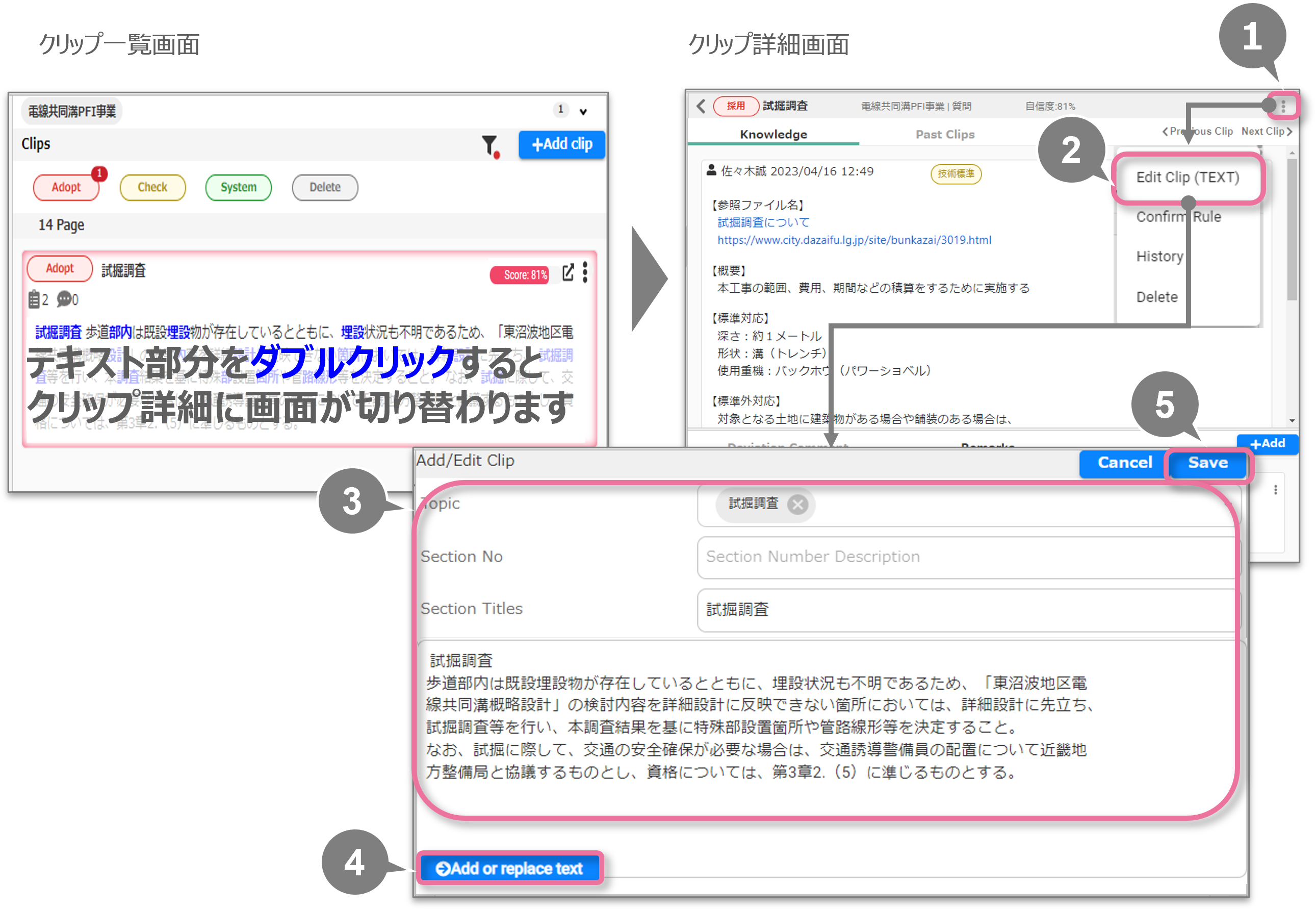 テキスト部分をダブルクリックすると、画面がクリップ詳細に切り替わります